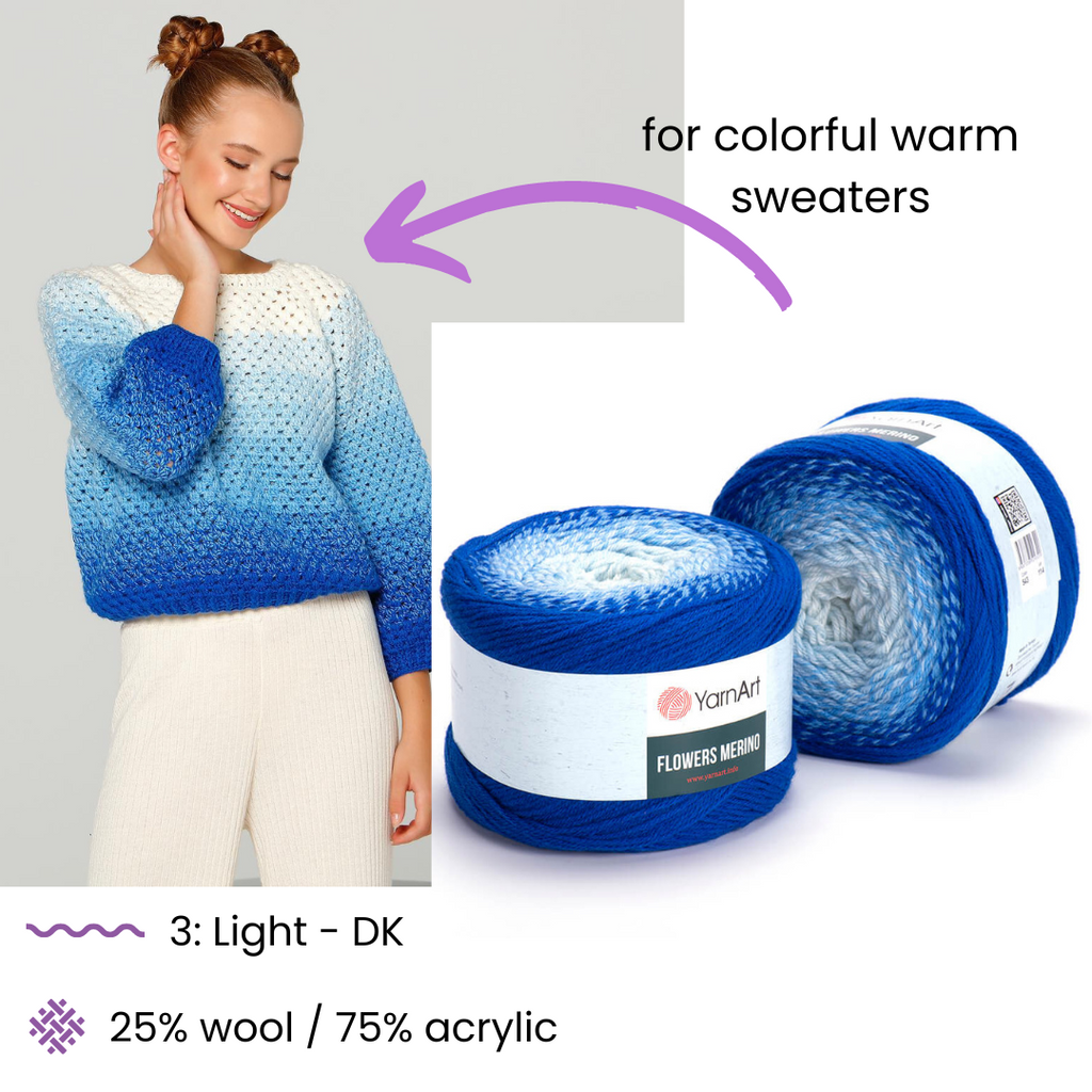 💡 Astuce Saison : Vous aimez ces coloris mais cherchez un fil plus frais pour l'été ? Retrouvez la version originale en coton/acrylique ici : YarnArt Flowers. Le "Merino" est spécifiquement conçu pour les saisons froides.